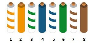 Afbeelding 2 is het zelfde als afbeelding 1 alleen uitvergroot de aansluitingen zijn genummerd van 1 tot 8 de kleuren en nummers zie je in afbeelding 3