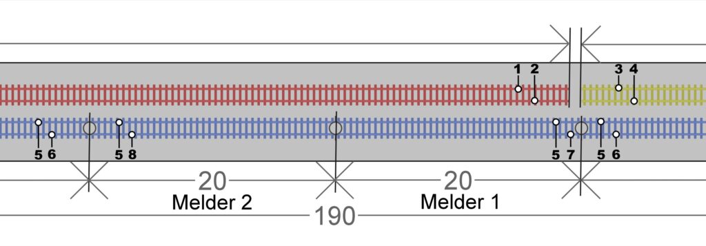 Het gele spoor om de decoders te programmeren.